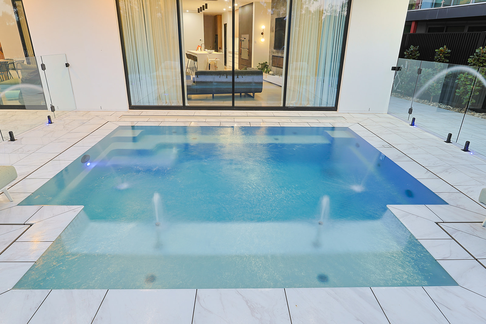 Lighting: The SPA Electrics Multi-Colour LED system transforms the pool into a visual centrepiece, shifting effortlessly from soft evening ambience to vibrant illumination — all controlled at the touch of a button.