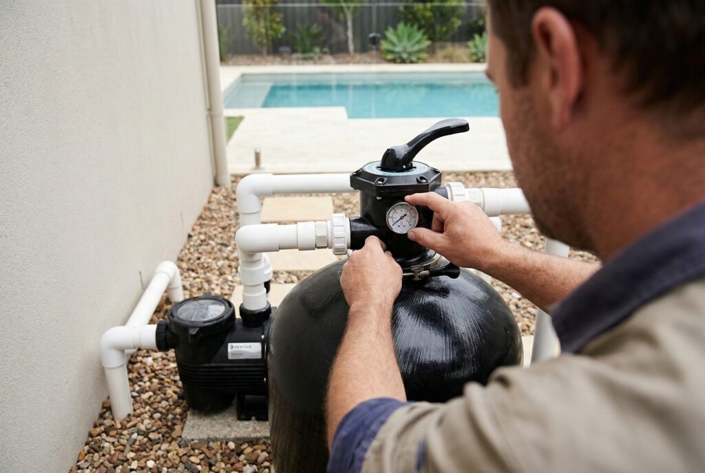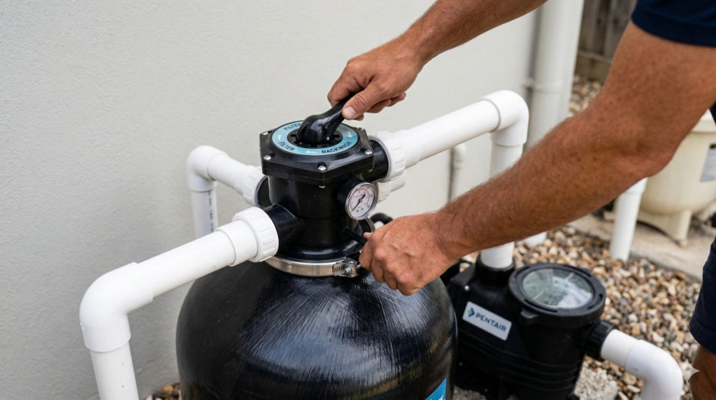 - Backwashing your filter (for pools with sand or media filters)