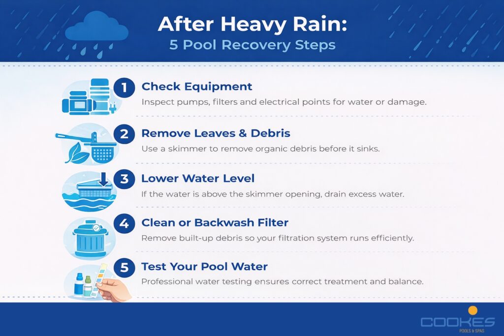 The good news is that a few simple checks after heavy rainfall can help restore your pool and keep everything running smoothly.